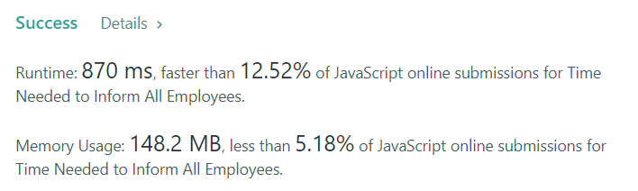 dfs 함수는 employess의 head값을 가지고 온 뒤, dfs 함수를 재귀호출 한다. 이 때 informTime[head]를 더하여 제일 긴 시간을 return한다.