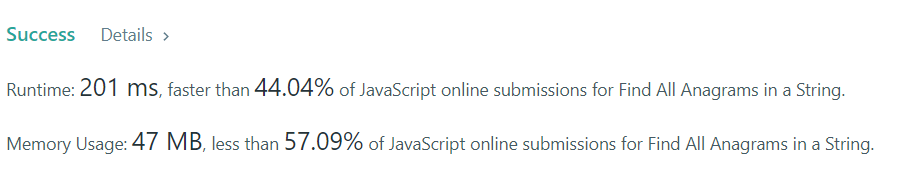 두 개의 문자열과 p가 주어지면 p의 아나그램의 모든 시작 지수 배열을 s 단위로 반환합니다. 답변은 어떤 순서로든 반환할 수 있습니다.