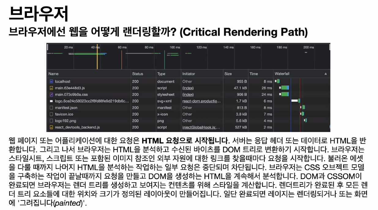 웹이 빌드되고 유저에게 전달되어 브라우저에 랜더링 되기 까지의 과정