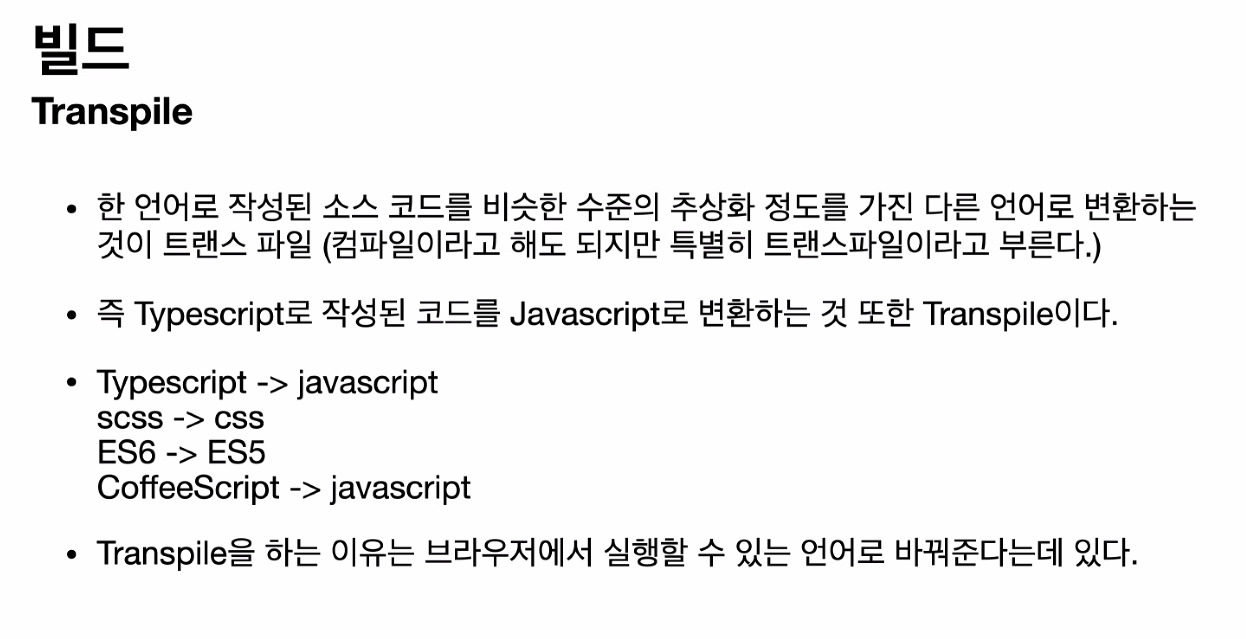 typescript -> javascript는 high 언어에서 high 언어로 변경되는 것이기 때문에