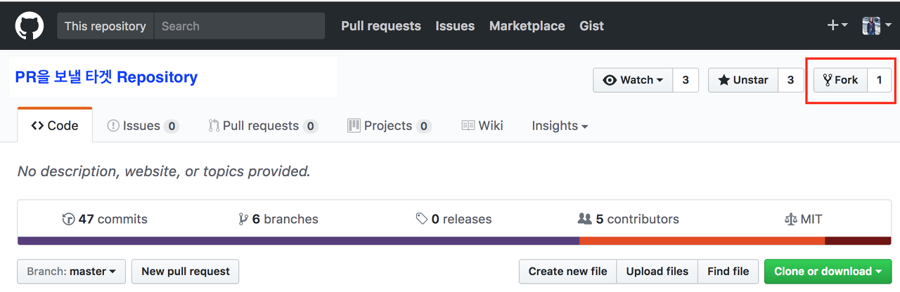 - 타겟 프로젝트의 저장소를 자신의 저장소로 Fork 한다.