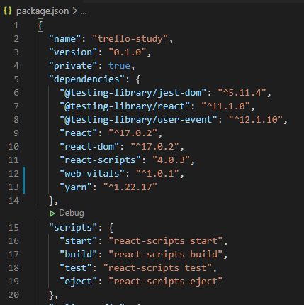 package.json 을 살펴보면 다음과 같은 예시의 스크립트를 볼 수 있는데, 이때문에 react-scripts 명령어가 실행되는걸 볼 수 있다.