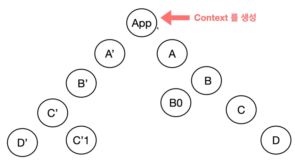 App 에서 Context를 생성할 경우, 하위 요소들 전부 App의 Context에 직접 접근할 수 있는 권한이 생기게 된다.