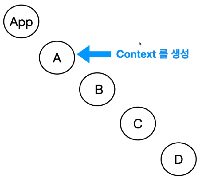 A 컴포넌트에 어떤 Context를 생성하면 하위 요소들이 Context에 직접 접근할 수 있는 권한을 가지게 된다.