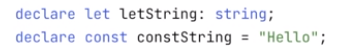바로 타입 정의에서 letString은 string 타입이고, constString 은 "Hello"로 정의되어 있다.
