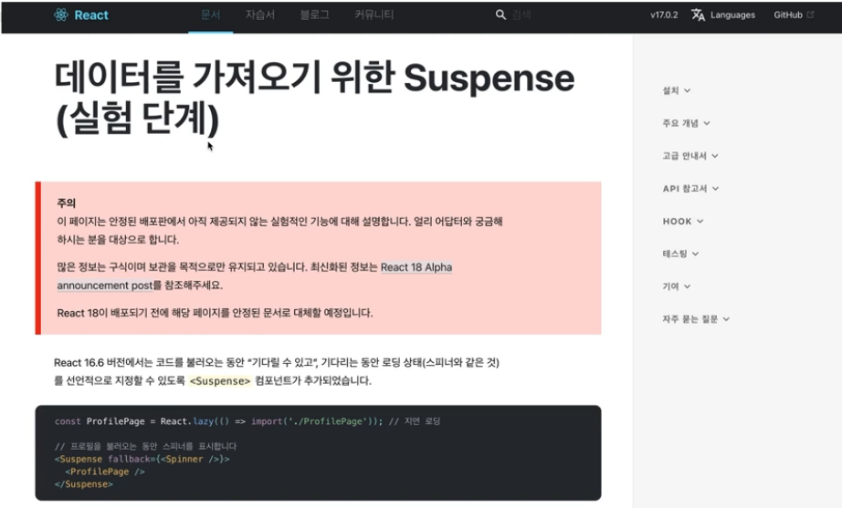 React Query를 위한 Suspense는 실험적인 단계이다.