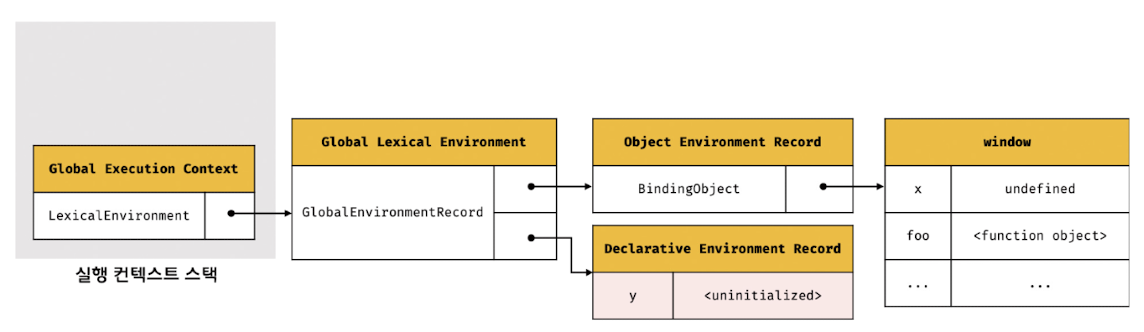 - 생성된 변수나 함수 식별자를 키로 실행 컨텍스트가 관리하는 스코프에 등록
