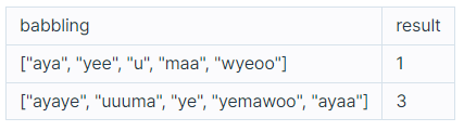 - 1 ≤ babbling[i]의 길이 ≤ 15