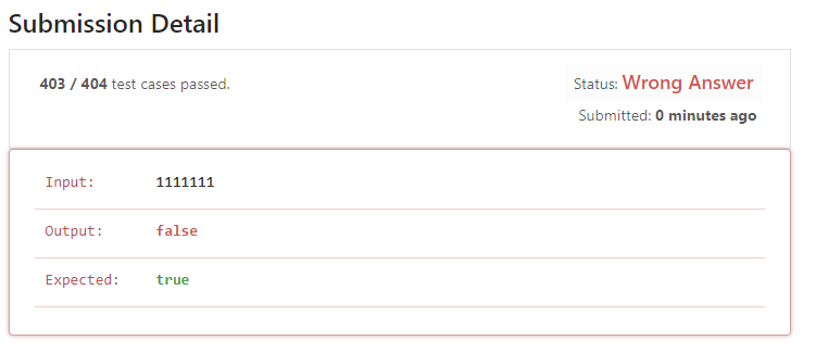 1111111이 들어오면 각 자릿수의 제곱은 7이니까 false가 맞지 않나..? 라는 생각이다.